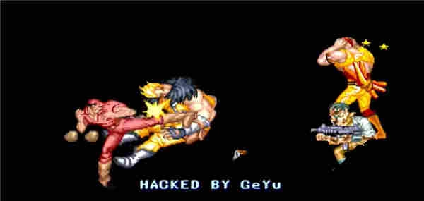 6、BOSS变白痴法!!自己独创的。首先想办法让他两把大刀全部落在屏幕场景的中线上(叠放在一起更好),而BOSS已经被踹出屏幕,马上将身位移到屏幕最靠外的线路上,会发现BOSS丧失一切技能,只会像傻子似的从屏幕缓缓的走出来,不会跳,也不会碎步移了。哈哈,你就折跑回去把他再度踢出屏幕,然后他再白痴一样慢慢的又走回屏幕,然后再踢....反复致死!!但是注意一定不要再上下移了,一旦离开这跳横线路,BOSS马上又活蹦乱跳起来。
