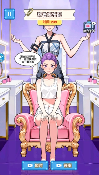 4. 正如下方图片展示的那样,我挑选了演出换装这一关卡,进入关卡后,玩家得在规定时间里给角色挑选合适的服饰。