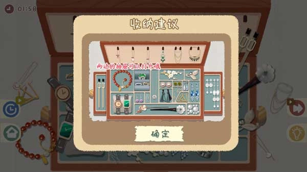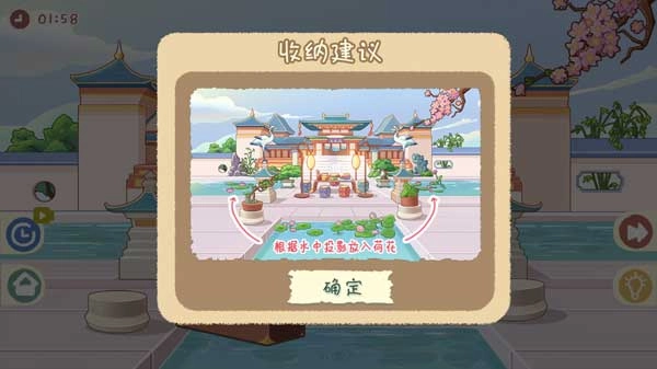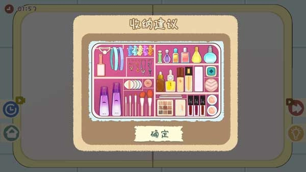 进入关卡后,就可以开始收纳操作了。要是到了后面不清楚该如何收纳,大家可以点击右下角的提示按钮,参照收纳建议来完成收纳。