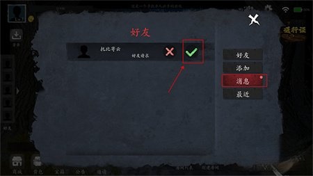5、好友接收到邀请后,点击绿色的勾号以同意邀请。