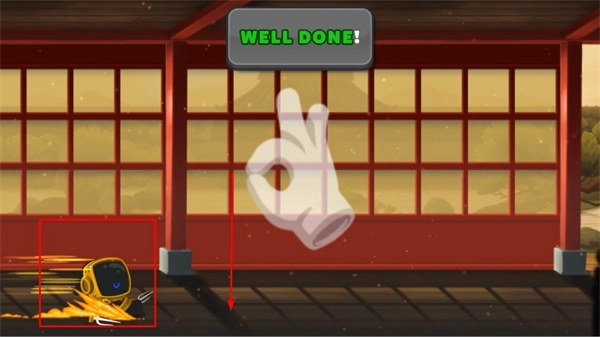 1、操作黄色的小机器人在关卡里前进,向下滑动屏幕就能让它做出下蹲或滑行动作。