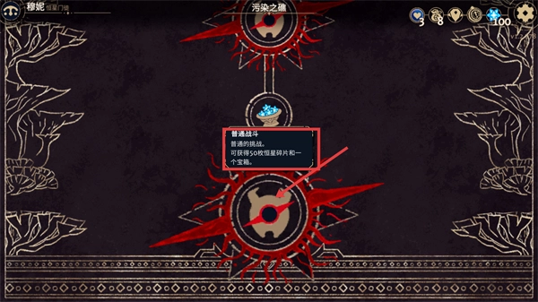 4、在关卡界面里,点击标有【普通战斗】的节点,完成挑战后能得到【50枚恒星碎片】以及一个宝箱类奖励。
