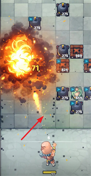 进入关卡后,可直接释放技能,借助砖块的持续反弹,就能攻击到后方的敌人。