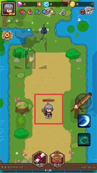 2、对红框内的角色进行操控,使其在地图场景中移动;界面会展示角色的各项属性,与此同时,还能借助右侧的技能以及装备道具来推动流程的进行。
