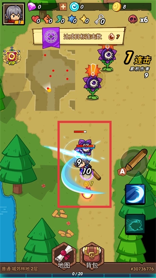 3、对红框内的敌人发起攻击,达成【7次连击数】,每次攻击可造成【9到10点】伤害,通过积累击杀进度来完成目标。