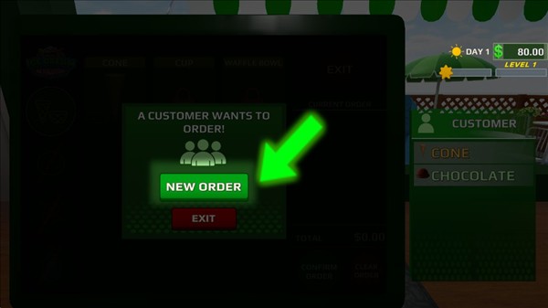 2、转动视角,前往收银台开始为顾客点单。