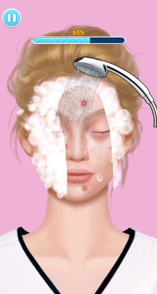 2、点击 “开始游戏” 前,先确认角色面部的痘痘、斑点分布位置,后续护肤步骤可针对性操作,提升护理的精准度与效率。
