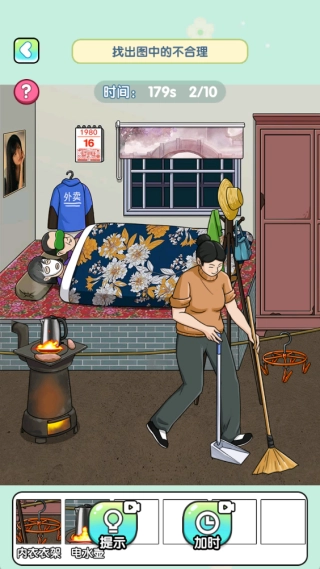 4、游戏场景里存在不少不合理的物品,玩家得在限定时间内找出这些物品,以此通过所有关卡的考验。