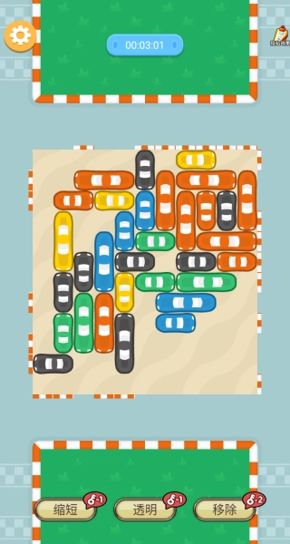 4、关卡内车辆密集堵塞时,优先观察底部辅助功能,“缩短” 可临时缩小车辆体积、“透明” 能让车辆穿透,卡关时合理使用这些功能。