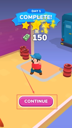 4. 推进经营流程:当界面出现“DAY1 COMPLETE!”的提示时,说明第一天的经营已圆满完成。点击“CONTINUE”按钮,就能开启第二天的挑战与成长之旅。