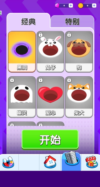 1、进入游戏后,从经典或特别类型的黑洞中选择心仪款式,确定后点击开始,开启吞噬冒险。