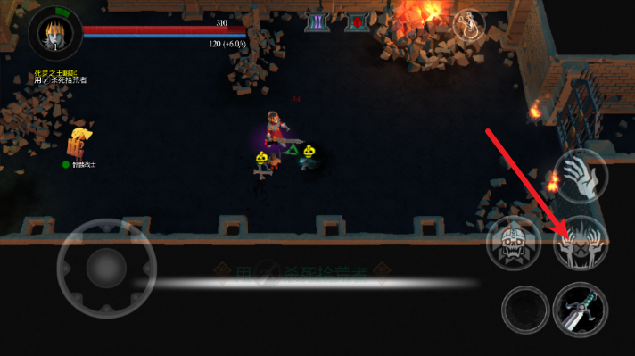进入场景后,通过左侧的摇杆来操控移动,借助右侧的攻击指令去击败拾荒者。