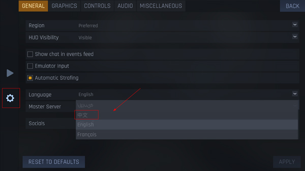 2、接着点击左侧的齿轮图标,找到【Language】选项,将语言设置为【中文】。