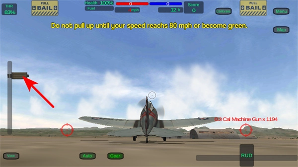 3、留意速度仪表的数值变动,等速度上升至80mph且显示为绿色时,进行拉升操控,这是完成起飞动作的关键操作,做好这一步能让飞机平稳升空,防止操作出错。