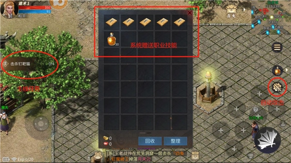 进入游戏后,我们首先得跟着主线任务走一波来升级。系统会自动给我们几本职业基础技能书,这样前期过渡就有保障了。