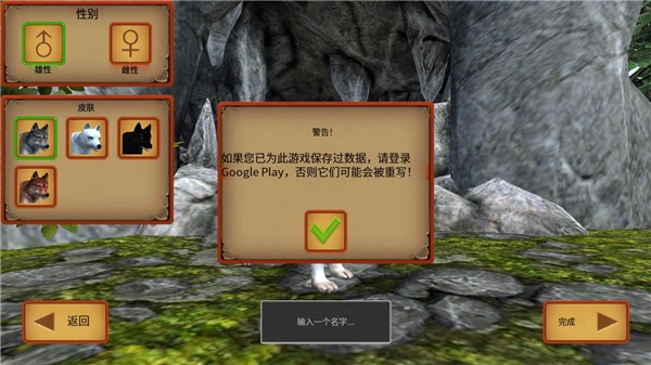 3、选择自己喜欢的狼以及性别,再给自己取个名字。