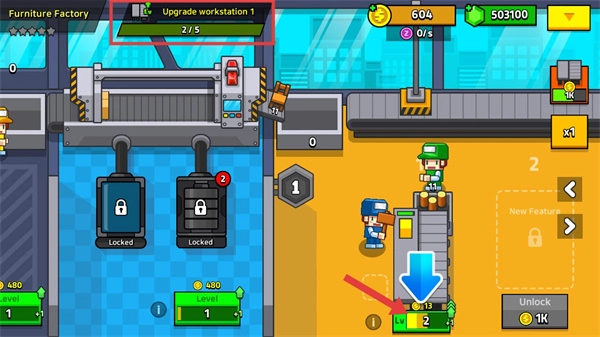 进入游戏后,根据任务指引点击相应位置升级你的机器,就能着手进行操作了。