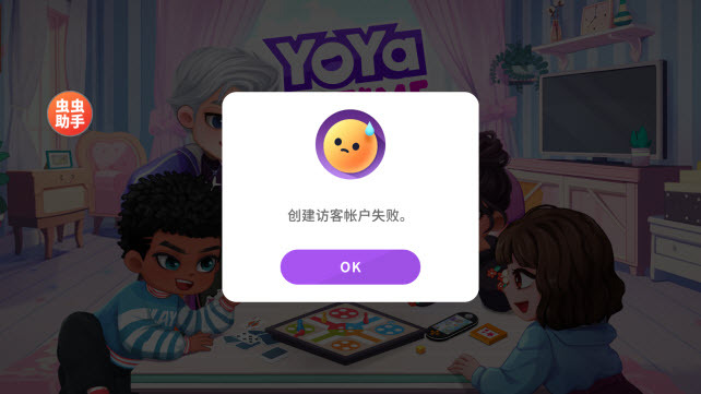 2、我们选择游客模式进入,提示“创建访客账户失败”,如本文开头所说,需要加速器才能正常游玩。