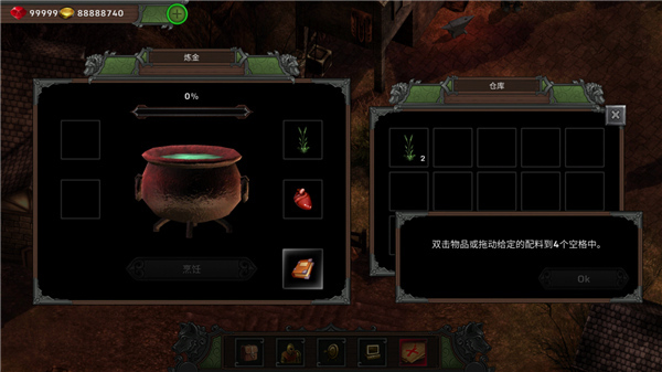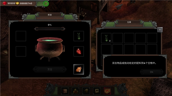11、点击商人旁边的锅,将材料放进锅里进行炼制;