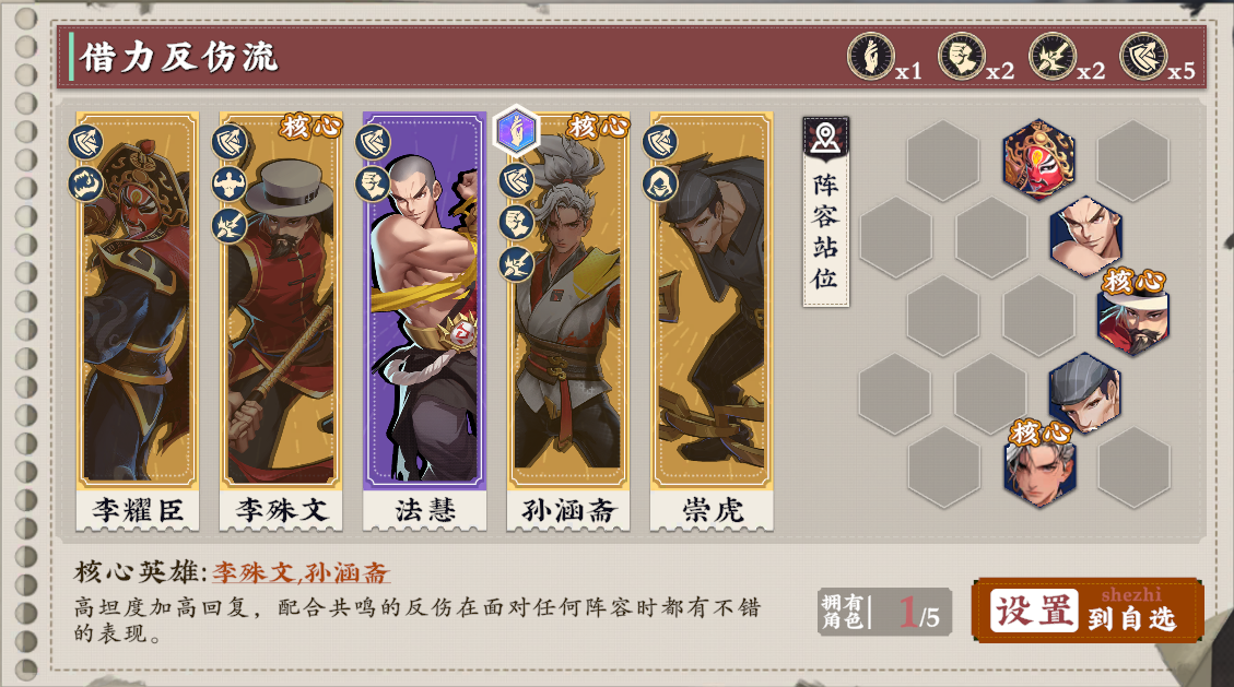 3、打发思路:高坦度加高回复,配合共鸣的反伤在面对任何阵容时都有不错的表现。