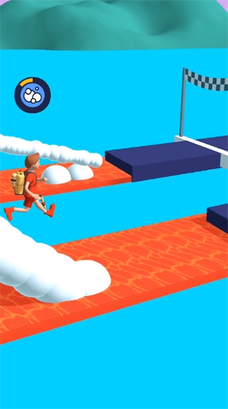 在搭建好道路后,需操控角色快速奔跑前进,力求以最快速度抵达终点。