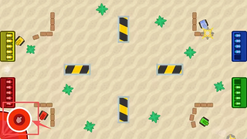玩坦克对战游戏时,通过方向键操控坦克移动,把握合适的时机开炮发起攻击,点击红色圆圈形状的暂停按钮即可暂停游戏。