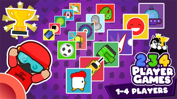 在各种不同的4人迷你游戏里,用简单的单触式操作和小伙伴们一较高下吧!不管你在哪儿,都能在同一台设备上开启多人实时对战。你可以和两位玩家一起玩,要是身边有更多朋友或家人,也能和三位甚至四位玩家同台竞技!
