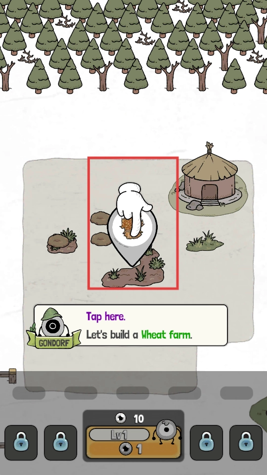 农场搭建完成后,点击下方与“Lv1”相关的区域,创建1级工人。