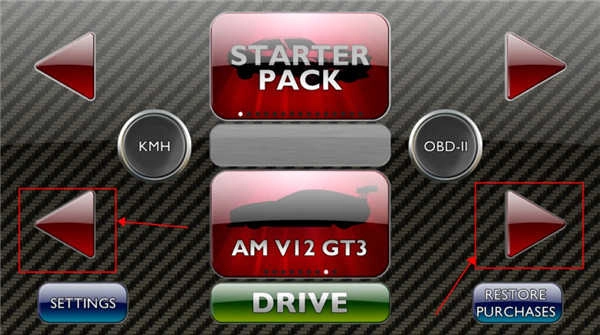 进入游戏后,通过屏幕两侧的按钮切换车辆选择。