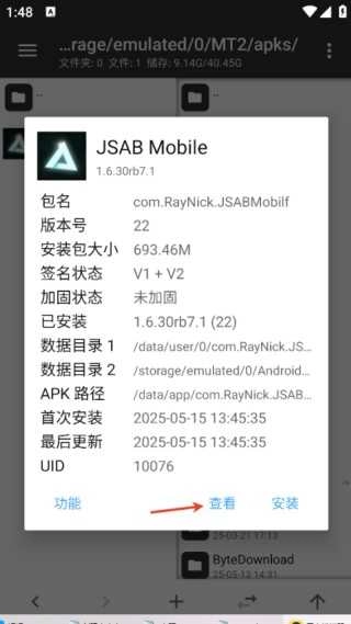之后在右侧文件区域依次点击Android、data、com.RayNick.JSABMobilf、files文件夹,最终界面呈现如下。