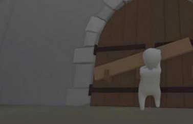 进入城堡关卡后,下图呈现的是Bob所处的首个场景。他双手搬起身旁的石块,朝着木门上的锁头猛冲过去,只需连续撞击两三次,就能把锁毁坏。