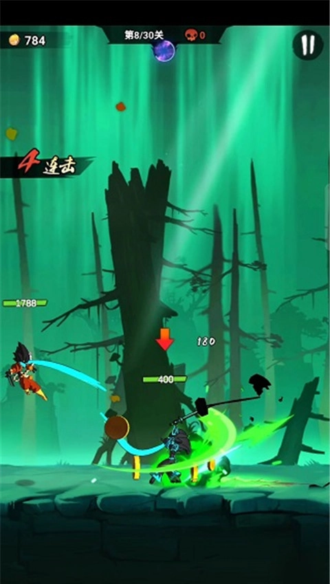 经典的横版过关玩法,玩家需操控火柴人开启一段段冒险之旅,在途中击败怪物,达成各个关卡的挑战目标。
