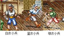 白衣小兵:特征白衣蓝裤,手持一把匕首,白衣小兵是最先出场的,攻击方式:用匕首斜划。