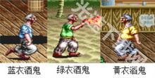 蓝衣酒鬼:第一种登场的酒鬼,攻击方式:喝一口酒之后会突然的拿酒瓶袭击人,能够伤及敌人同伙。