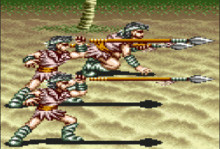 只有一种长矛兵,远距离攻击兵种,手持一杆长矛,攻击方式是扔长矛,伤害大,扔完之后马上翻跟斗跑掉,并且翻跟斗的时候带有攻击能力,长矛兵血量很少,碰一下就死。