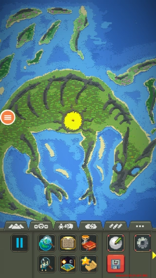 这个世界才刚刚诞生,玩家能够点击画面下方的各个面板,以此创造生物,进而推动文明的诞生与发展。
