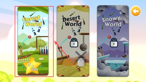 3. 查看任务进度:进入森林世界后,界面上显示的“0/150”意味着当前已击碎的瓶子数量是0,而任务要求击碎的目标数量为150个。
