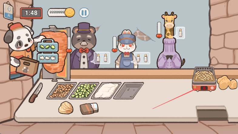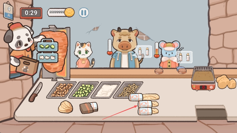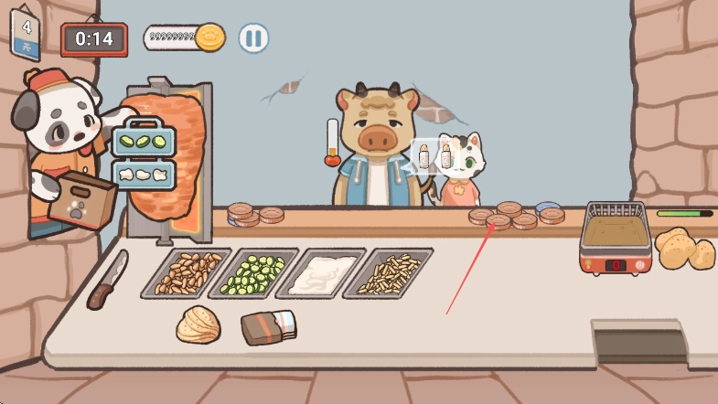 食物完成后递给顾客,获得金币收入。