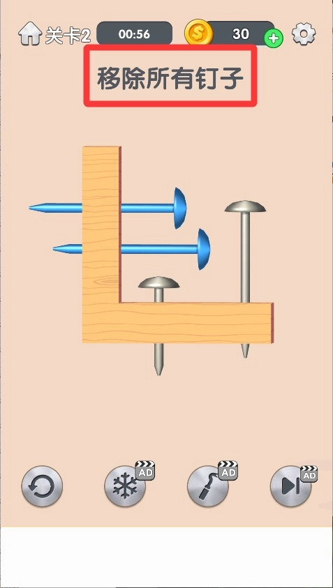 3、请按照系统提示的顺序逐个拔钉子,若顺序错误则需重新开始,操作时不必急于求成。