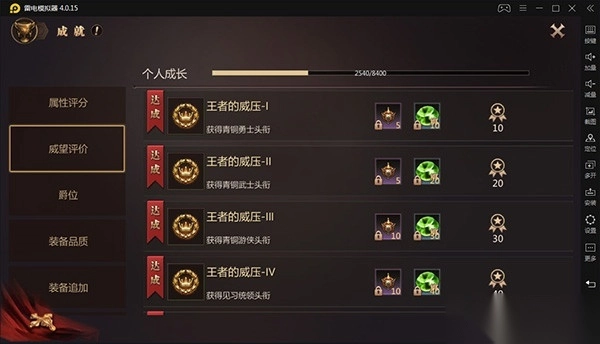 个人成长主要围绕玩家自身展开,涵盖等级、战力、属性评分、装备、法宝等方面。等级和战力的提升,能够达成相应成就并获取奖励。