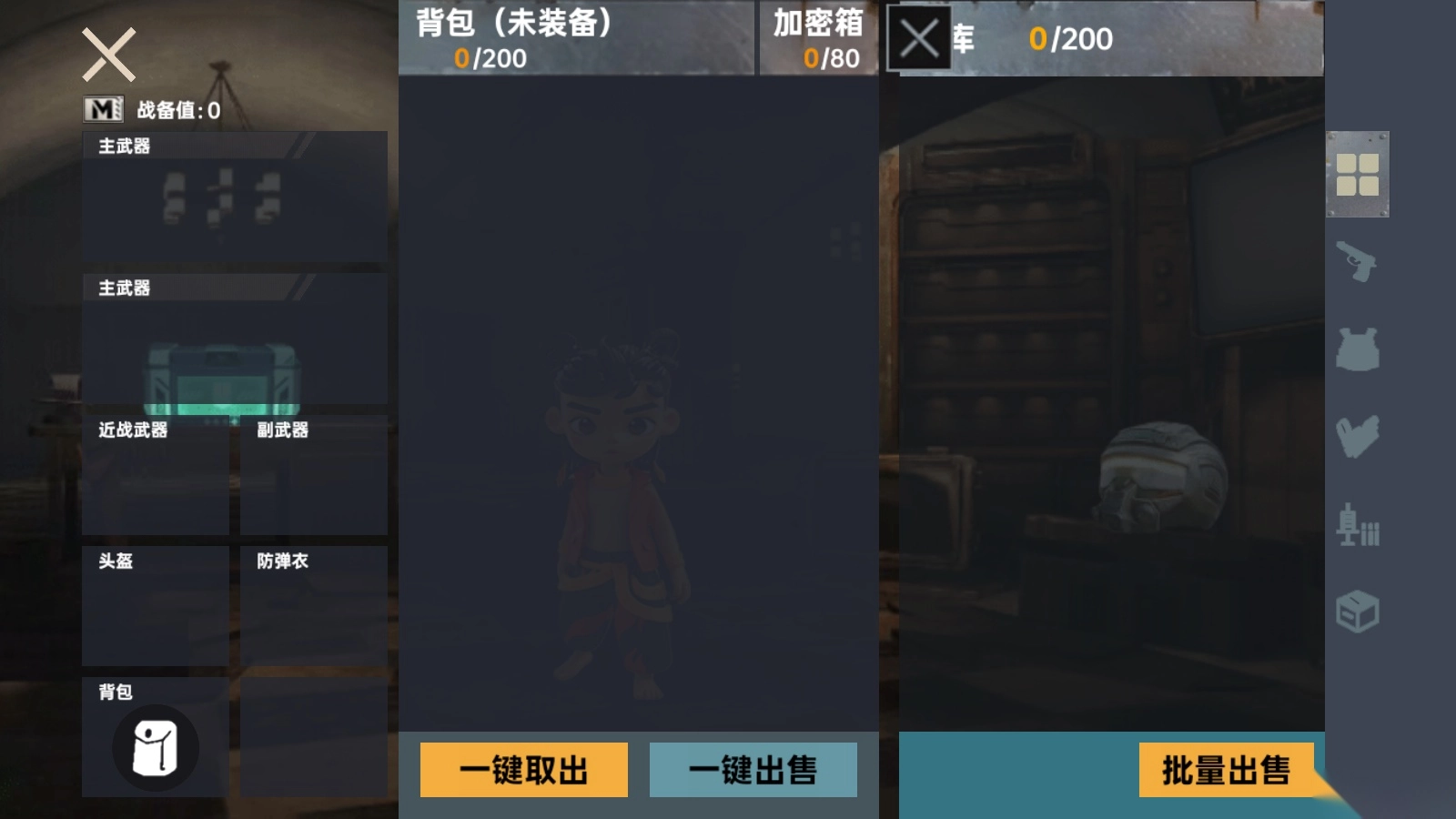 2、游戏首页界面如图所示,玩家能够打开自己的战备背包来查看里面的道具。