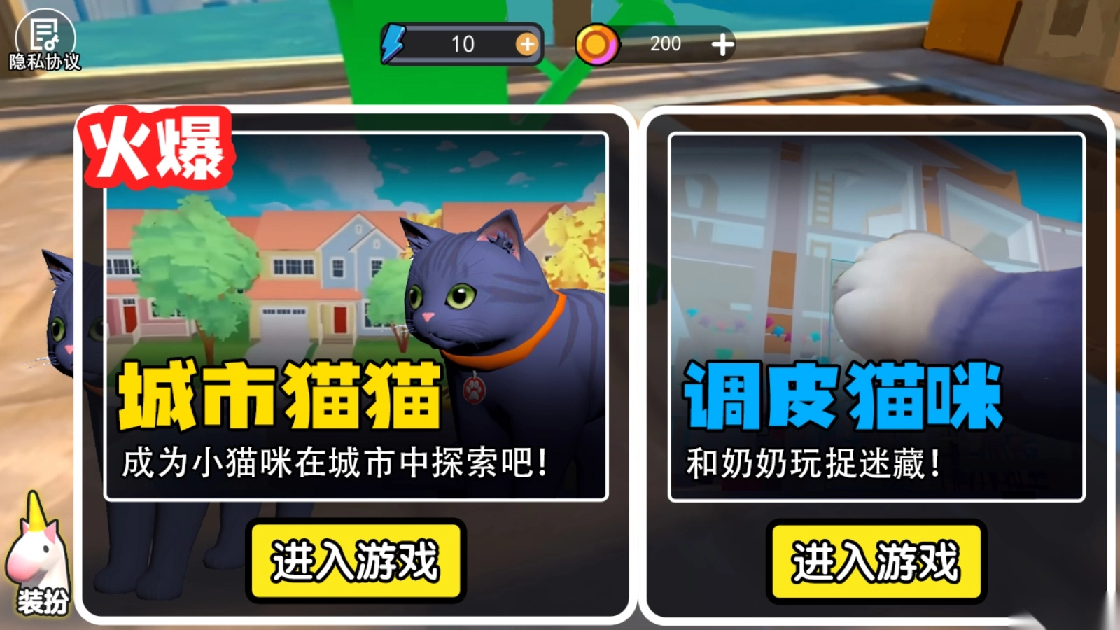 2、如图所示,有两种游戏模式可供选择,既可以选择城市猫猫模式,也可以选择调皮猫咪模式。
