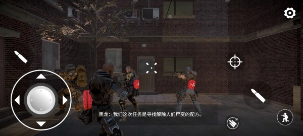 4、进入游戏后,左摇杆用于操控角色移动,滑动屏幕可调整视角方向,左右两侧设有子弹按钮,十字星按钮能实现瞄准功能,右下角的人物图标则可切换射击模式。