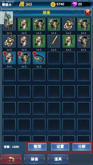 点击背包后,就能查看我们已获取的装备图鉴,你既可以给角色装备这些物品,也能对它们进行整理归类,还能选择将其分解处理。