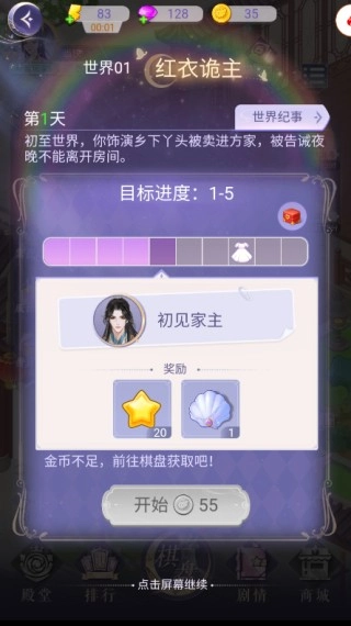 点击开始,扣除金币开始剧情;