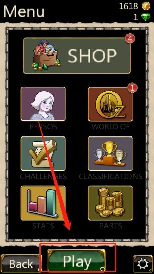 点击“开始”按钮即可直接进入游戏画面;此外,玩家点击菜单按钮还能进入任务道具页面,查看各类任务详情并购买所需道具。