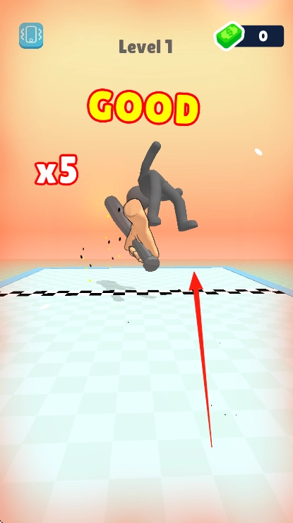 保持连续操作,把黑色小人击飞过终点线,就能得到【GOOD】评价,当连击数达到x5时,即可通过Level1关卡。