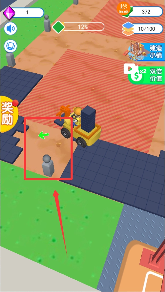移动到红色框框指示空旷位置上堆放砖块。