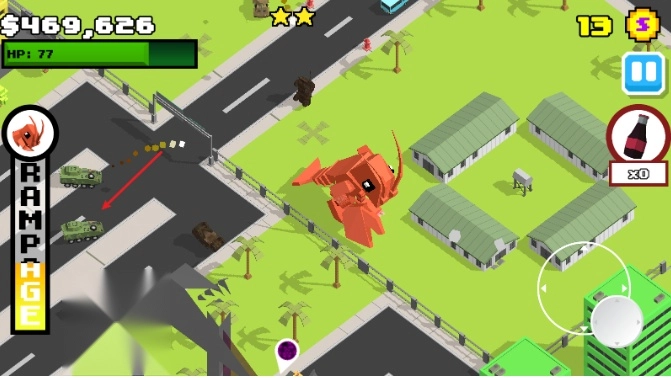 粉碎城市(Smashy City)是一款像素卡通风格的休闲解压闯关游戏。在游戏里,你会变身为一只强大的怪兽,在城市里肆意横行,尽情破坏、粉碎眼前的一切!游戏没有任何规则束缚,你只需随心所欲地砸烂建筑物、敲碎摩天大楼,凭借无与伦比的力量释放内心的压力。还能和警察、军队展开激烈战斗,用导弹、激光甚至核弹夷平整个城市,体验最纯粹的毁灭快感!