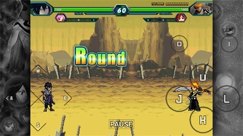 进入游戏后,左侧区域用于操控角色移动,右侧区域则承担攻击功能,同时也能点击下方中间位置的【pause】按钮来暂停游戏。在战斗过程中,记得留意上方的绿色血条,一旦血条余量不多,就要及时避开对手的攻击。